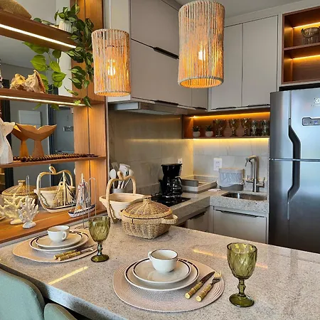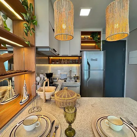 Flat A Beira-Mar Com Rooftop, Piscina E Vista Do Mar - Vila Porto, Porto De Galinhas also offers a full kitchen.
